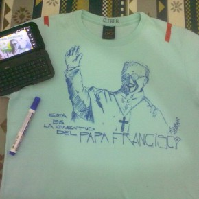 Que tal irradiar esse sorriso pelas ruas, no seu trabalho, no colégio, na faculdade, no grupo de oração? Simples. Veja abaixo como customizar uma camiseta básica com uma ilustração descolada.