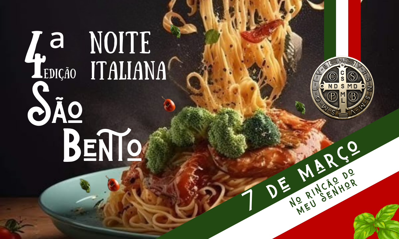 A Canção Nova de Cuiabá convida você para a 4ª edição da Noite Italiana São Bento: uma noite gastronômica com pratos típicos da culinária italiana. Será uma ótima oportunidade para conviver com amigos, familiares e ajudar diretamente no projeto Rincão do Meu Senhor, que visa melhorar cada vez mais o ambiente de evangelização da Chácara Nossa Senhora Auxiliadora, sede da Comunidade Canção Nova no Mato Grosso.