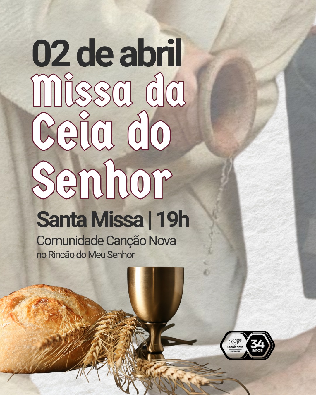 – 2 de abril (quinta-feira) – Missa de Lava-pés às 19h
