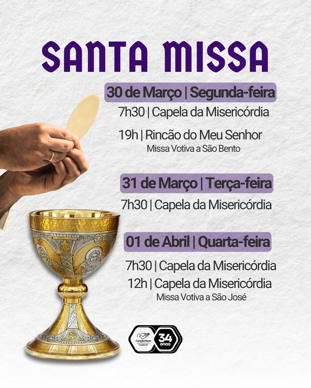 – 31 de março (terça-feira) – Missa às 7h30
