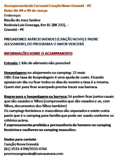 ACAMPAMENTO DE CARNAVAL CN GRAVATA